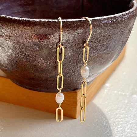 Quick Shop Hushwink Gold Filled Freshwater Rice Pearl Paperclip Chain Drop Earrings $72.00 Quick Shop