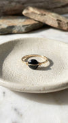 Sterling Silver or Gold Filled Black Tourmaline Split Circle Geometric Ring