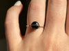 A minimalist black tourmaline ring with a unique split circle or half circle design. A delicate gold accent bisects the 6mm natural stone, creating a modern, geometric look. This sleek and delicate ring is perfect for everyday wear or for grounding meditation practice. Handmade in Chicago.